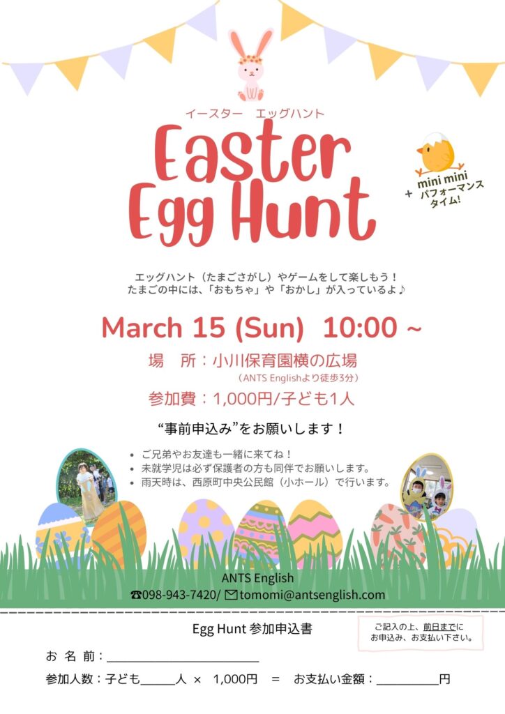 今年もEasterのイベント、Egg Huntを行います!
